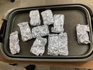 それをアルミホイルで包んで、ホットプレートの上へ・・・