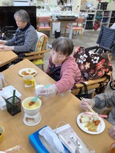 先月のバレンタインパーティーではチョコレートフォンデュを行い