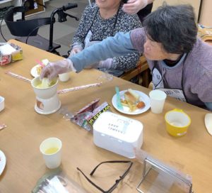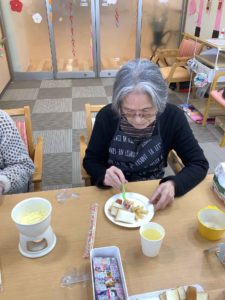 先月のバレンタインパーティーではチョコレートフォンデュを行い